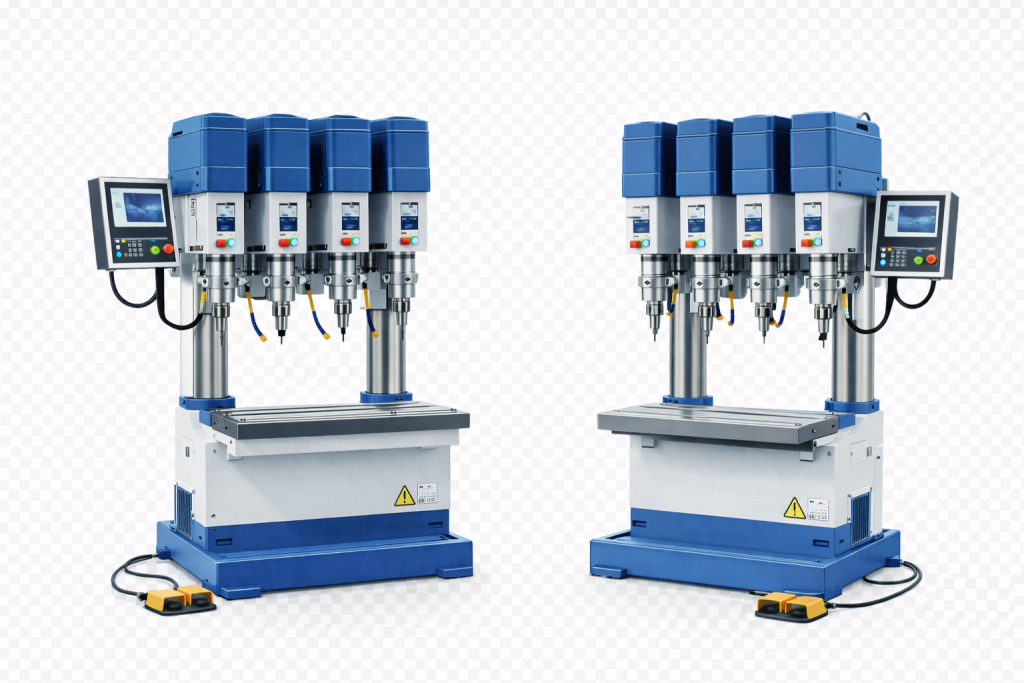 These machines use multiple spindles driven together to drill several holes in one cycle, significantly reducing machining time.