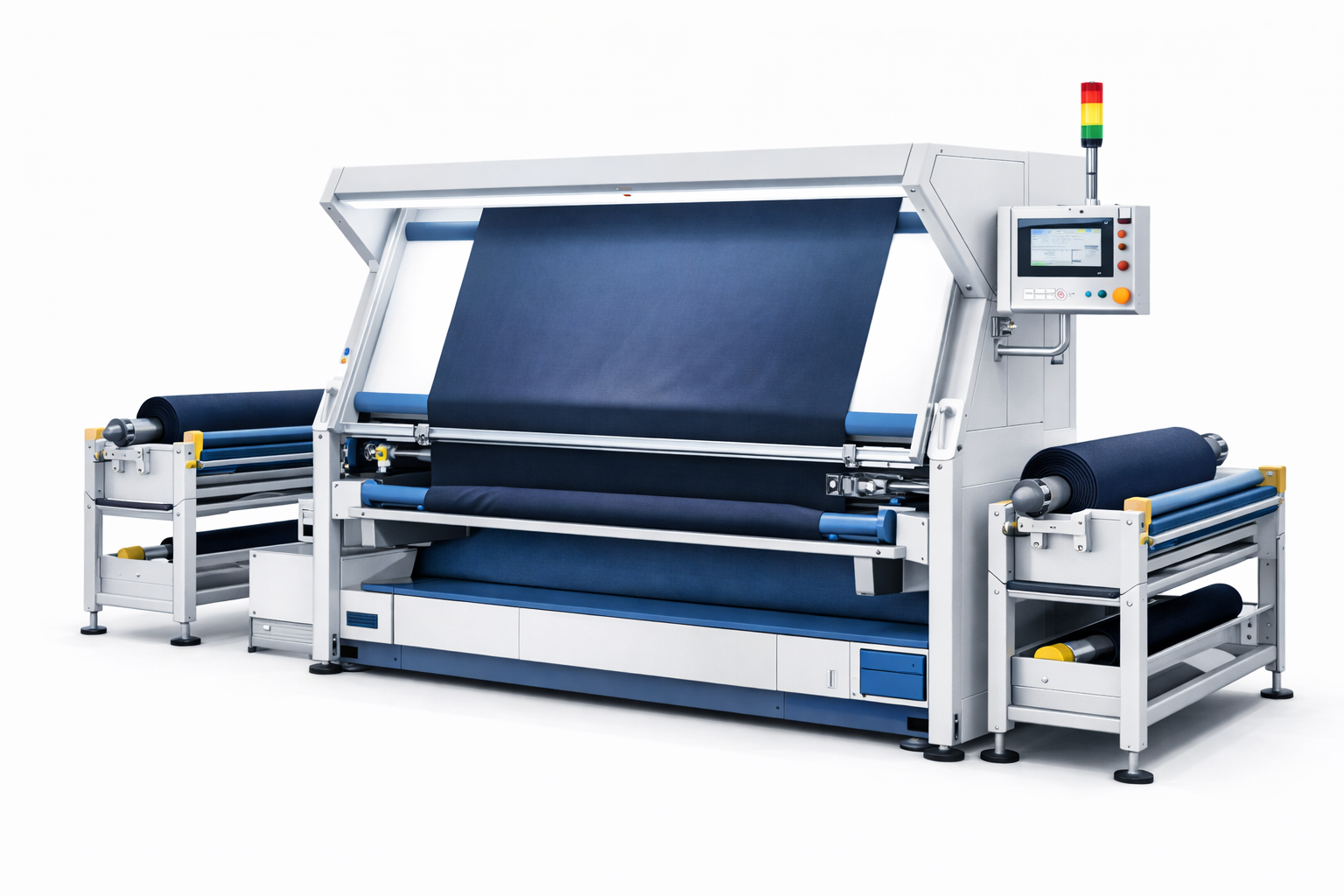 Rolling & Folding Machines are designed for neat, accurate, and efficient fabric rolling or folding after inspection and finishing.These machines roll or fold fabric evenly into rolls or stacks, ensuring proper alignment, consistent length, and ready-to-pack output.
